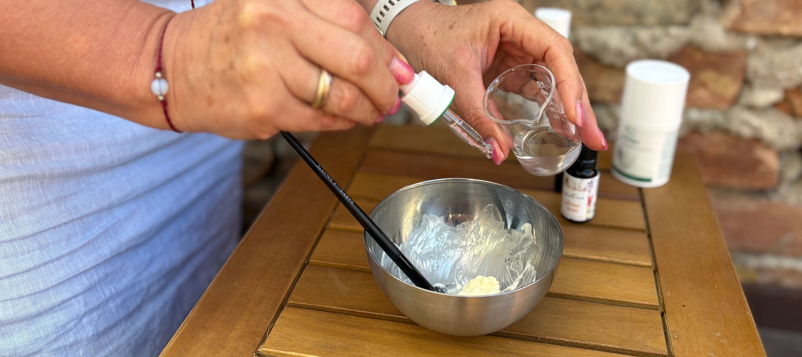 Do malé mističky, ve které můžete lehce šlehat vějířovým štětečkem, dejte cca 3 - 5 čajových lžiček nebo 1-2 polévkové lžíce jojobové masky. Vezmeme štěteček a za stálého šlehání přidáváme po kapkách minerální vodu. Ze základní jojobové masky, připravíme šlehačkovou emulzi, jejíž hustotu ponechám na vašem uvážení. Již takto připravená „hydratační“ maska i bez esenciálních olejů zrestartuje vaši pokožku za 15 minut.